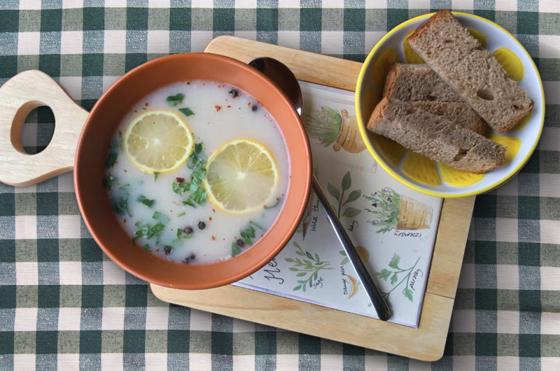 4. Whisk the egg yolk in a separate bowl for the marinade. Add one spoon of lemon juice and one spoon of flour and mix well. Gradually beat the chicken broth into the marinade . Once the mixture is warm, pour it into soup again gradually. Add the parsley finally.