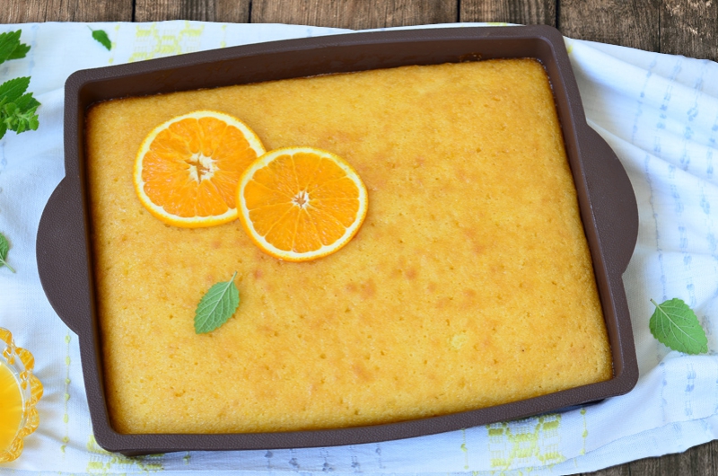 5. Add the hot syrup while the sweet semolina pastry is cold. You may serve after resting three hours.